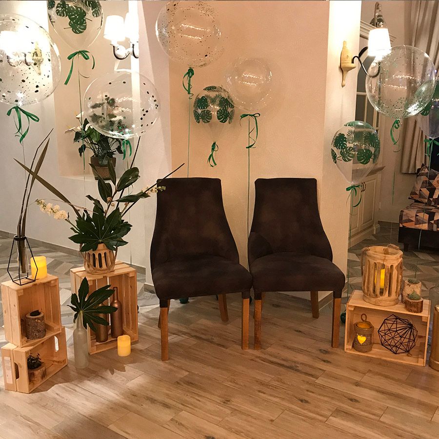 С нами работают лучшие флористы города студия цветов «Апрель», декораторы зала, оформление шарами.